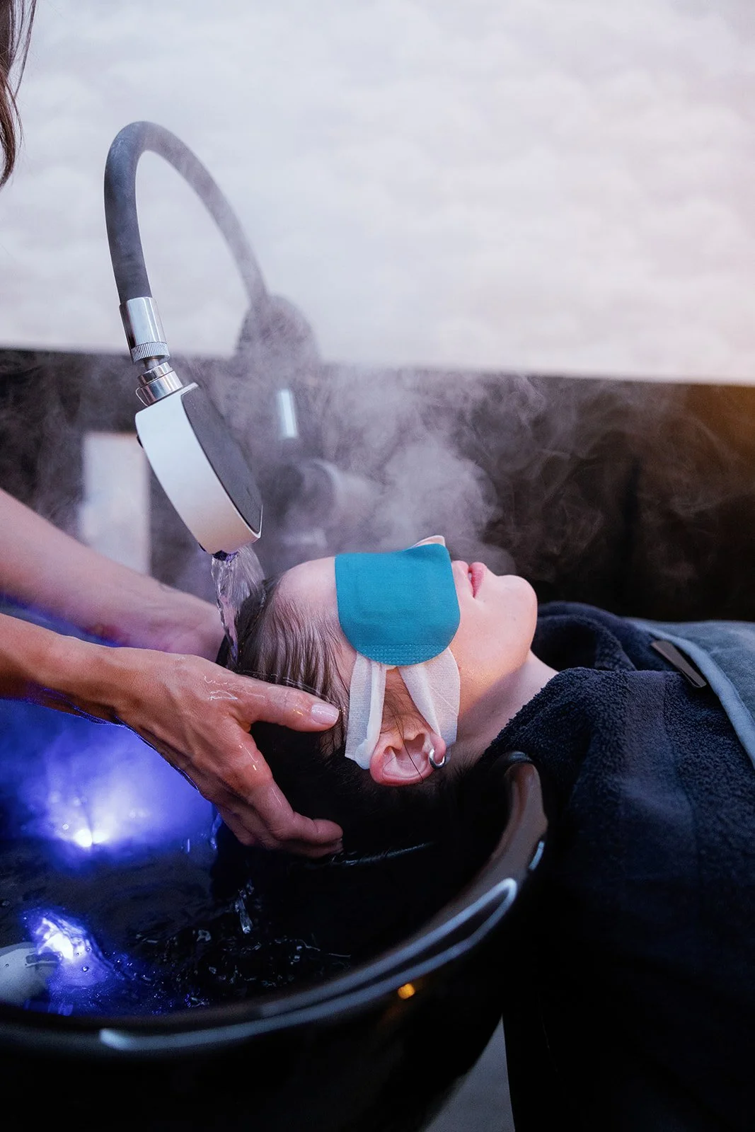 Indulge in our Signature HeadSpa Experience, a meticulously curated journey for your scalp and hair. Begin with a detailed scalp analysis followed by the enveloping warmth of our head steam bag. Revel in the rejuvenating scalp exfoliation and a bespoke massage tailored to your needs. Immerse yourself in the aromatic infusion of custom essential oils during the soothing waterfall relaxation. Luxuriate in a nourishing hair treatment from mid-length to ends, culminating in a flawless blowout that leaves you feeling utterly transformed.